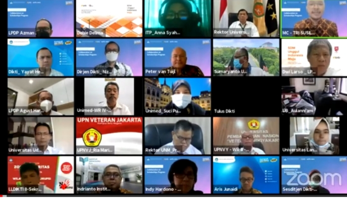 Penandatanganan ‘Cooperation Agreement: DIKTI-LPDP-STUNED Joint Scholarship Program’ diselenggarakan hari ini (Senin, 19 April 2021) secara daring dan disiarkan langsung melalui YouTube DIKTI dan LPDP. Acara ceremonial ini dihadiri oleh para pimpimpan lembaga seperti Dirjen DIKTI, Prof. Ir. Nizam; Sekretaris Dirjen DIKTI, Dr. Ir. Paristiyanti Nurwardani; Dirjen Perbendaharaan Kementerian Keuangan RI, Andin Hadiyanto; Direktur beasiswa LPDP, Dwi Larso; Direktur Nuffic Neso Indonesia, Peter van Tuijl; dan Sekretaris Kedua Bidang Politik Kedutaan Besar Belanda di Indonesia, Joris Ramm; beserta beberapa perwakilan asosiasi alumni Belanda di Indonesia. Juga dihadiri perwakilan Perguruan Tinggi se-Indonesia dan beberapa perwakilan Perguruan Tinggi Belanda yang berkolaborasi dalam program ini.