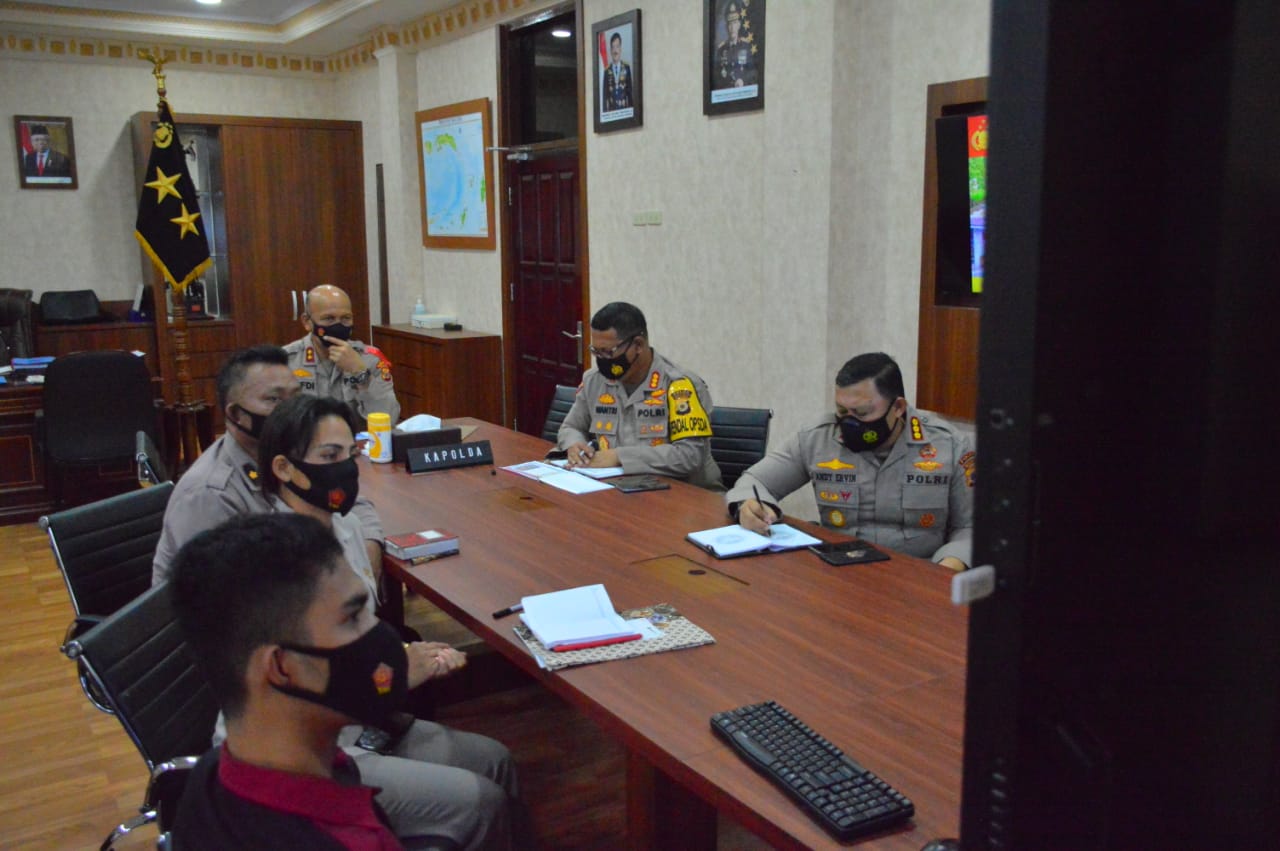 Ambon, MG.com – Kepala Kepolisian Daerah Maluku Irjen Pol Drs. Refdi Andri, M.Si, rapat bersama Wakapolri Komjen Pol Dr. Drs. Gatot Eddy Pramono, M.Si melalui video conference.