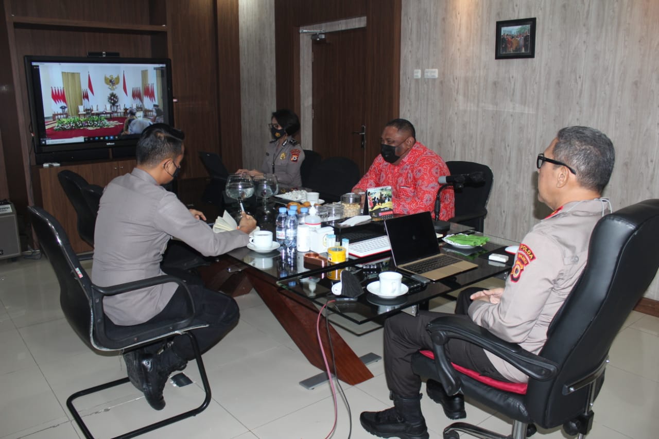 Ambon, MG.com- Wakil Kepala Kepolisian Daerah (Wakapolda) Maluku Brigjen Pol Drs Jan de Fretes M.M, mengikuti pembukaan Rapat Koordinasi Nasional (Rakornas) terkait pengawasan internal pemerintah, secara virtual dari ruang kerjanya, Markas Polda Maluku, Kota Ambon, Kamis (27/5/2021).