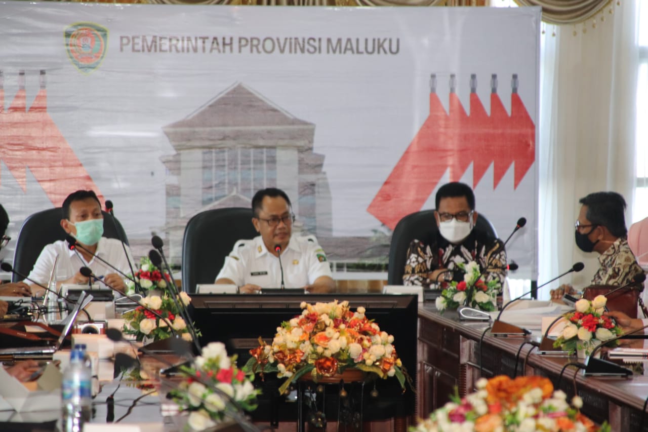 AMBON, MG.com – Sekretaris Daerah (Sekda) Maluku Kasrul Selang memimpin Rapat koordinasi (Rakor) di lantai 6 Kantor Gubernur, Rabu (2/6/2021).