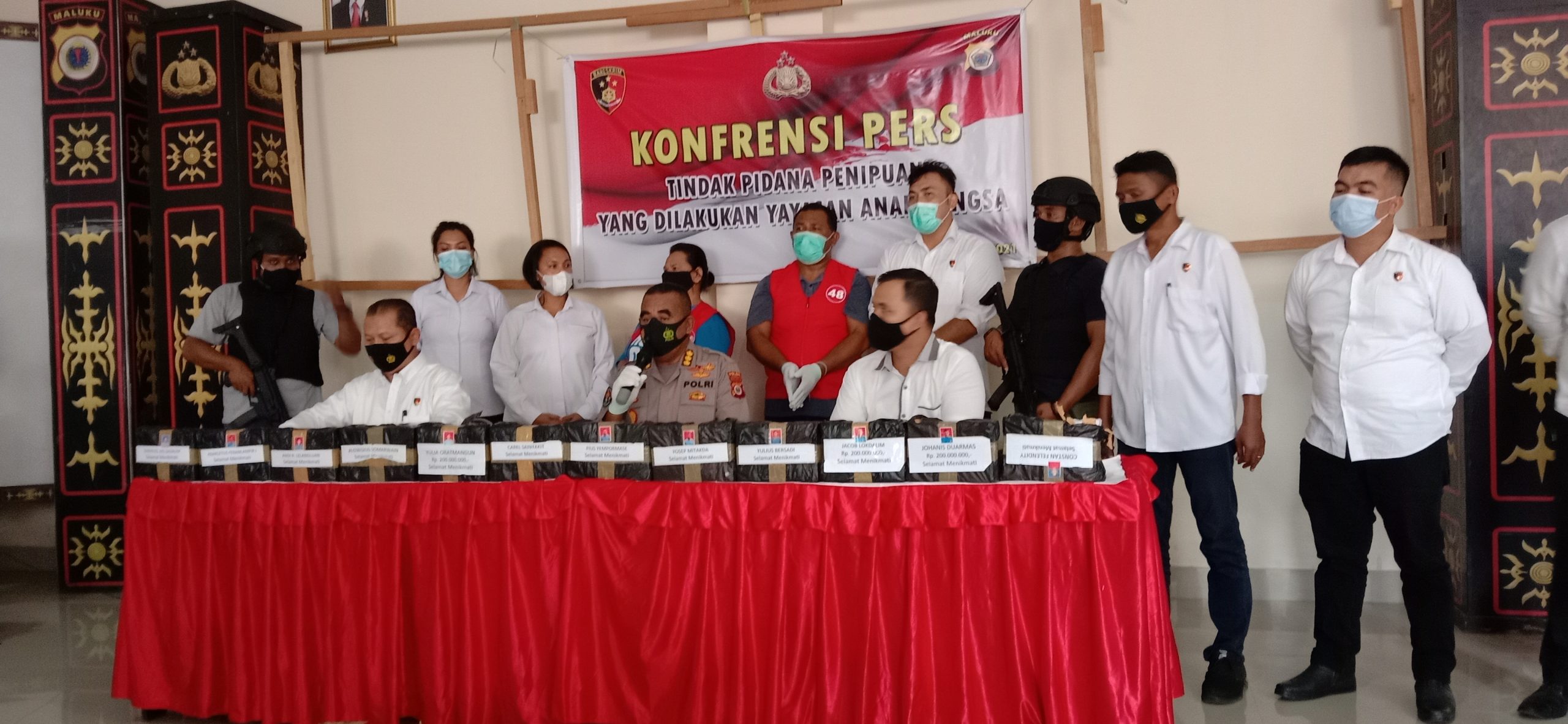 AMBON, MG.com – Polda Maluku akhirnya merilis tujuh nama tersangka tambahan kasus penipuan Yayasan Anak Bangsa (YAB), yang sebelumnya tertutup dengan alasan kepentingan penyidikan. Dari tujuh nama yang dirilis, ternyata ada satu nama perempuan yakni Bidadari sedangkan enam lainnya masing-masing, Supici Leky Alias Ice, Lendy Latupatty, Ongen Miru, Berti Miru, Andreas dan Lucas Pattala.