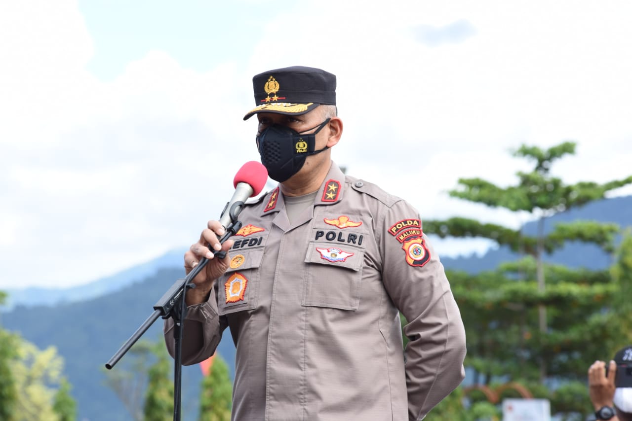 Bansos disalurkan langsung oleh Kapolda Maluku Irjen Pol Drs Refdi Andri, M.Si, didampingi Wakapolda Brigjen Pol Drs Jan de Fretes, M.M, yang berlangsung di Lapangan Letkol CHR Tahapary, Tantui, Kota Ambon, Jumat (25/06/2021).