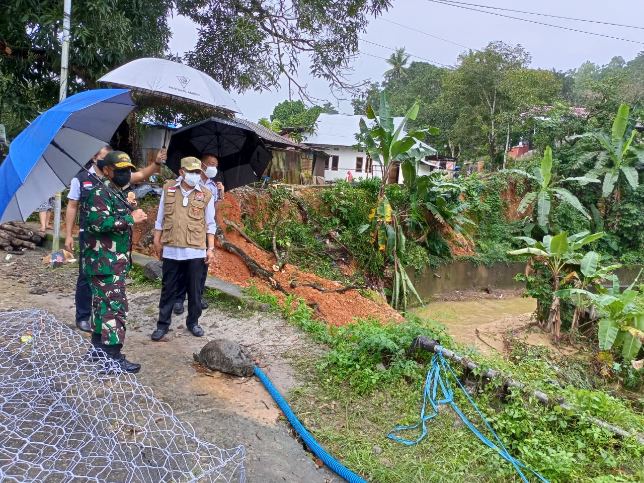 AMBON, MG.com – Walikota Ambon, Richard Louhenapessy, bersama Komandan Korem 151/Binaiya, Brigjen TNI Arnold Ritiauw didampingi Sekretaris Kota (Sekot) A.G Latuheru, bersama pimpinan Organisasi Perangkat Daerah (OPD), Senin (12/7/2021) pagi, melakukan tinjauan terhadap beberapa titik bencana di Ambon.