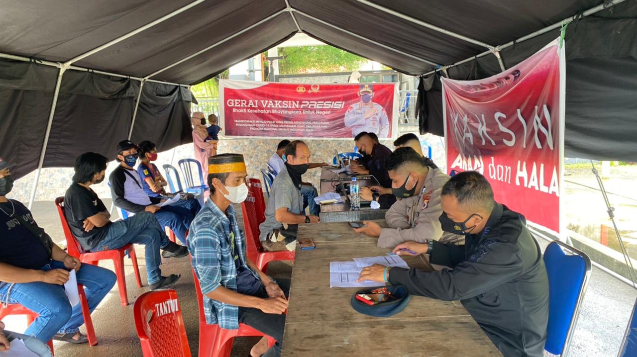 Ratusan orang warga datang untuk menjalani vaksinasi Covid-19 yang diselenggarakan Polda Maluku melalui Rumah Sakit Tingkat III Bhayangkara Ambon.