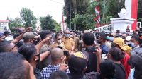 AMBON, MG.com – Wakil Gubernur Maluku Drs. Barnabas Orno akhirnya menemui puluhan mahasiswa UKIM yang melakukan orasinya di depan pintu masuk gerbang timur Kantor Gubernur Maluku Selasa, (10/08/2021)