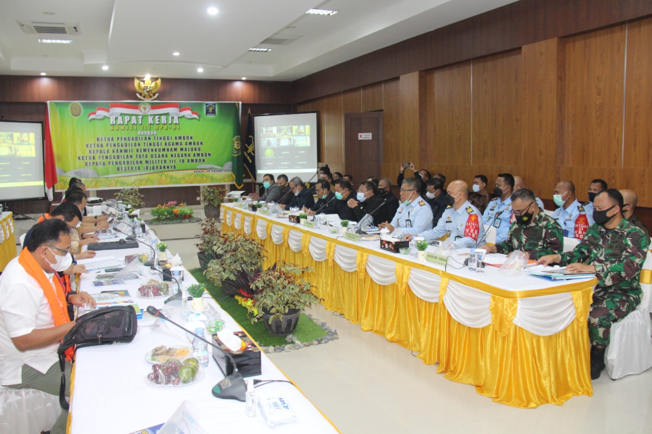 Maluku,MG.com-Kepala Kantor Wilayah (Kakanwil) Kementerian Hukum dan Hak Asasi Manusia (Kemenkumham) Maluku, Andi Nurka mengikuti rapat dalam rangka Kunjungan Kerja Komisi III Dewan Perwakilan Rakyat (DPR) Republik Indonesia (R.I) bertempat di Pengadilan Tinggi Ambon, Jumat (8/10/21).