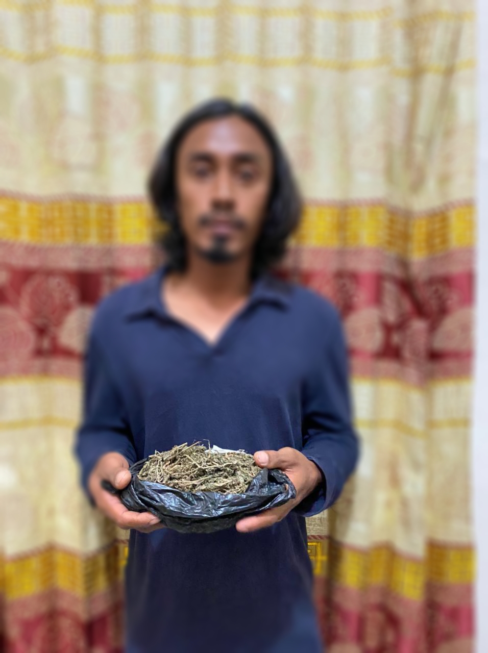 Selain itu, kata Romi, tim penyidik juga menemukan sebuah bungkusan kertas HVS putih berisi daun ganja kering dengan berat bruto 24,70 gram. Ganja siap pakai ini disimpan di kantong celana yang digantung di belakang pintu kamarnya.