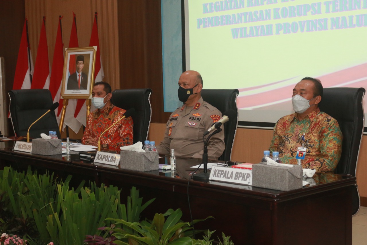 Rakor diikuti oleh Wakil Pimpinan KPK, Nurul Ghufron, Kapolda Maluku, Irjen Pol Refdi Andri, Kajati Maluku, Undang Mugopal dan Kepala Kantor Perwakilan BPKP Provinsi Maluku, Yunaedi.