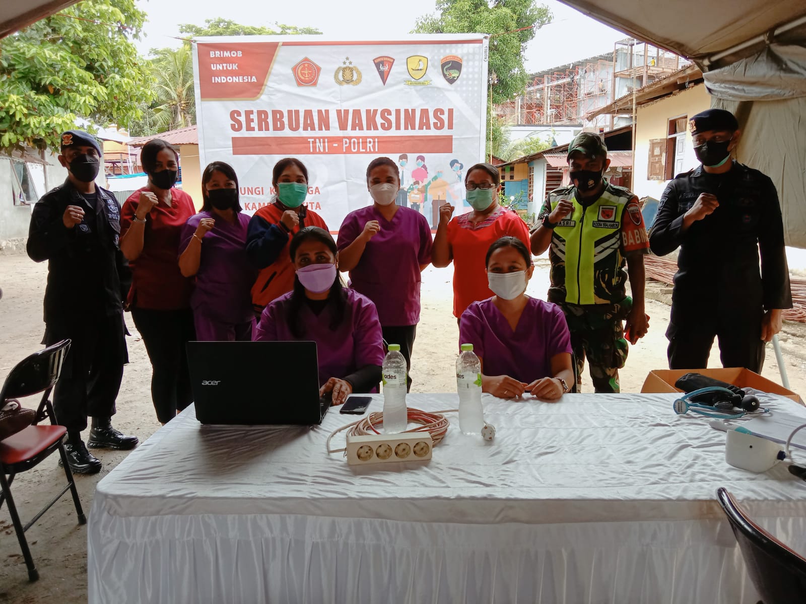 Vaksinasi yang digelar oleh personil Kompi 1 Batalyon A Pelopor Satbrimobda Maluku ini dipimpin Brigpol J. Ngamel.