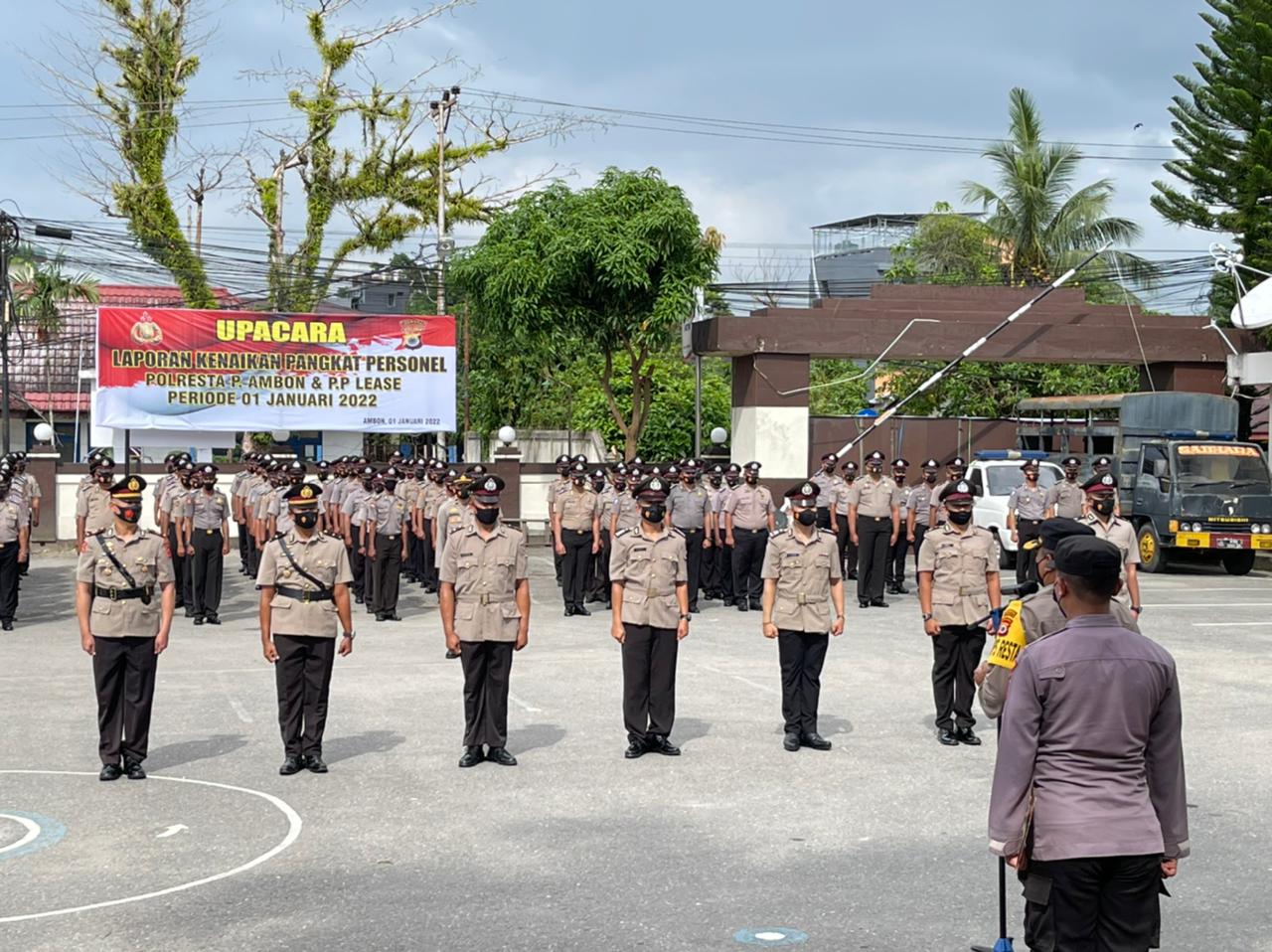 Ambon, MG.com – Sebanyak 401 personil Polda Maluku resmi dinaikan pangkat satu tingkat lebih tinggi, tepat 1 Januari 2022. 22 diantaranya perwira menengah, dan 47 perwira pertama.