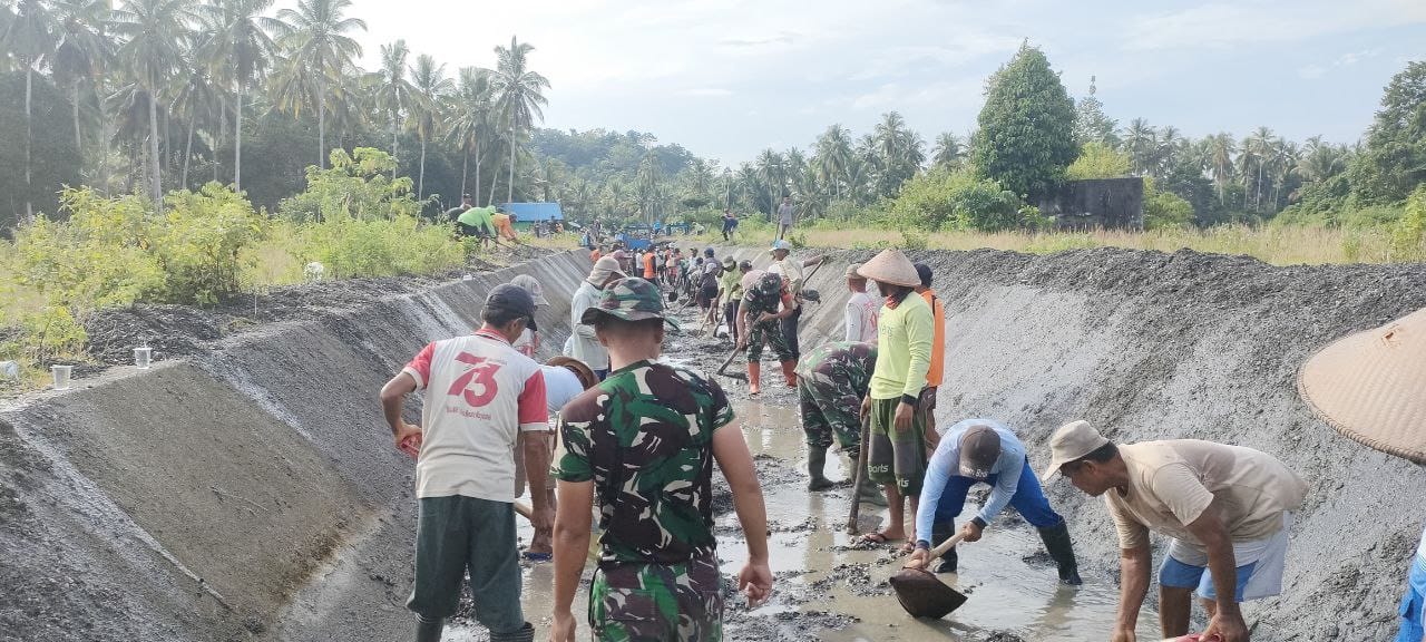 AMBON, MG.com – Desa Waihatu Kecamatan Kairatu Barat, Kabupaten Seram Bagian Barat (SBB), Selasa (1/01/2022) pukul 07.30 Wit personil Pos RAMIL yang dikomandani Sertu Wijayanto bersama anggotanya melaksanakan kerja bakti bersama petani membersihkan saluran irigasi. Kegiatan ini dilakukan untuk menyambut musim tanam padi tahun ini.