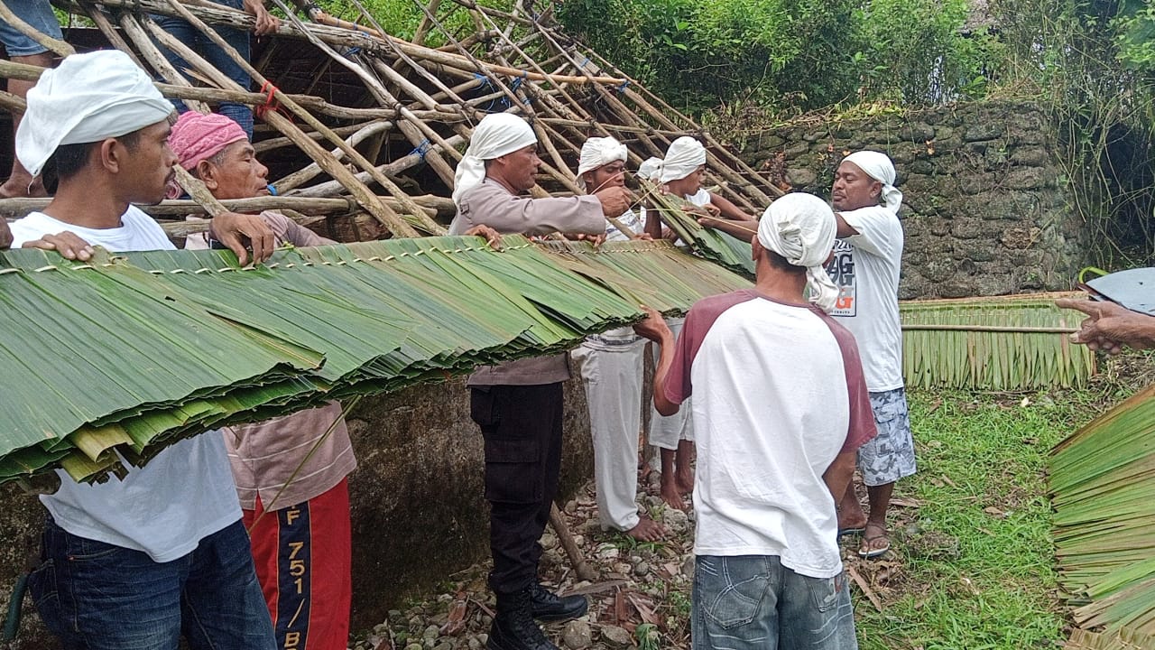 Dalam kesempatannya, Kapolsek Pulau Haruku, IPTU Julkisno Kaisupy ikut membantu warga membersihkan dan mengganti atap makam para Tetua Adat Negeri Pelauw, serta bersilaturahmi dengan seluruh warga yang ada.