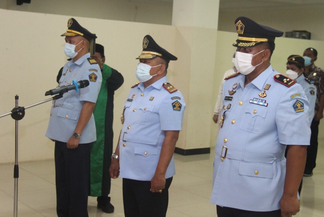 KUMHAM MALUKU,MG.com – Berlangsung secara virtual, Kepala Kantor Wilayah Kemenkumham Maluku,Andi Nurka, Kepala Divisi Administrasi, Agung Rektono Seto, dan PLT. Kepala Divisi Pemasyarakatan, Saiful Sahri mengikuti kegiatan Pelantikan dan Pengambilan Sumpah Pimpinan Tinggi Pratama di Lingkungan Kementerian Hukum dan HAM di Aula Kanwil Kemenkumham Maluku, Jumat(04/03/2022)