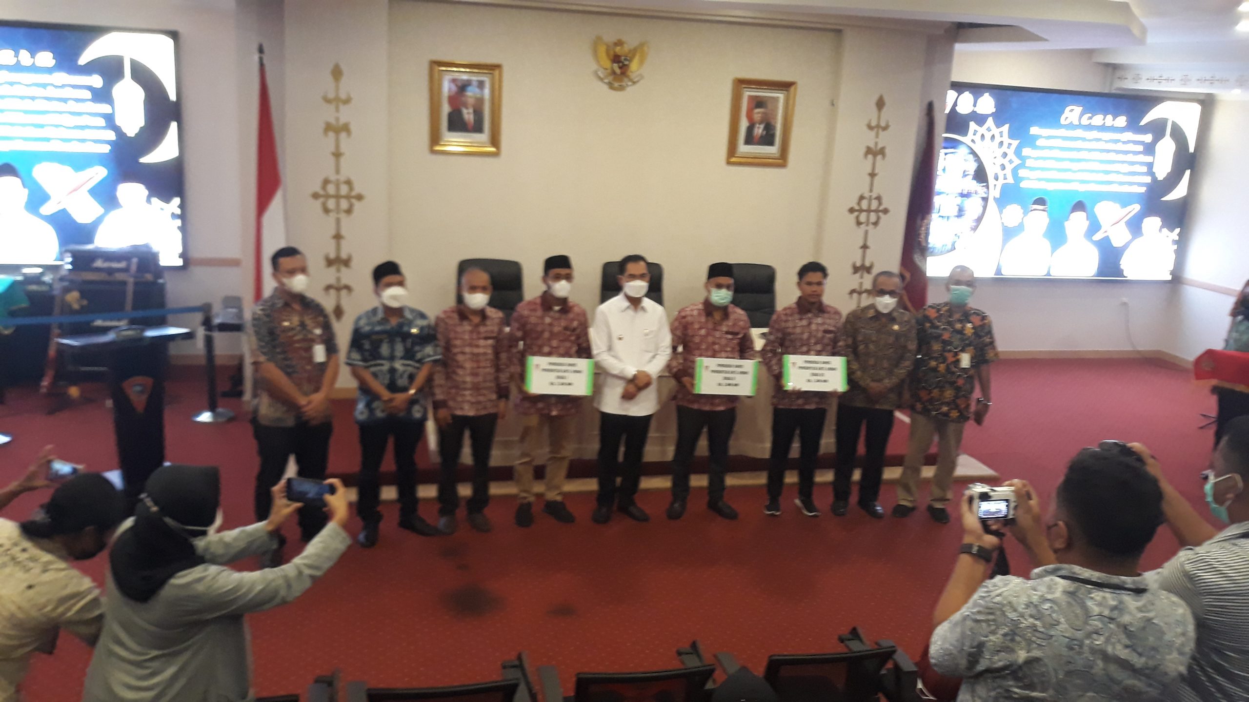 Ambon,MG.com- Pemerintah kota ambon menyerahkan bonus kepada peserta kafila kota ambon yang meraih juara pada musabaqah Tilawatil Qur’an ( MTQ ) tingkat provinsi maluku tahun 2022 dikabupaten kepulaun tanimbar yang berlangsung diruangan vlisingen,Kamis ( 28/04/22).