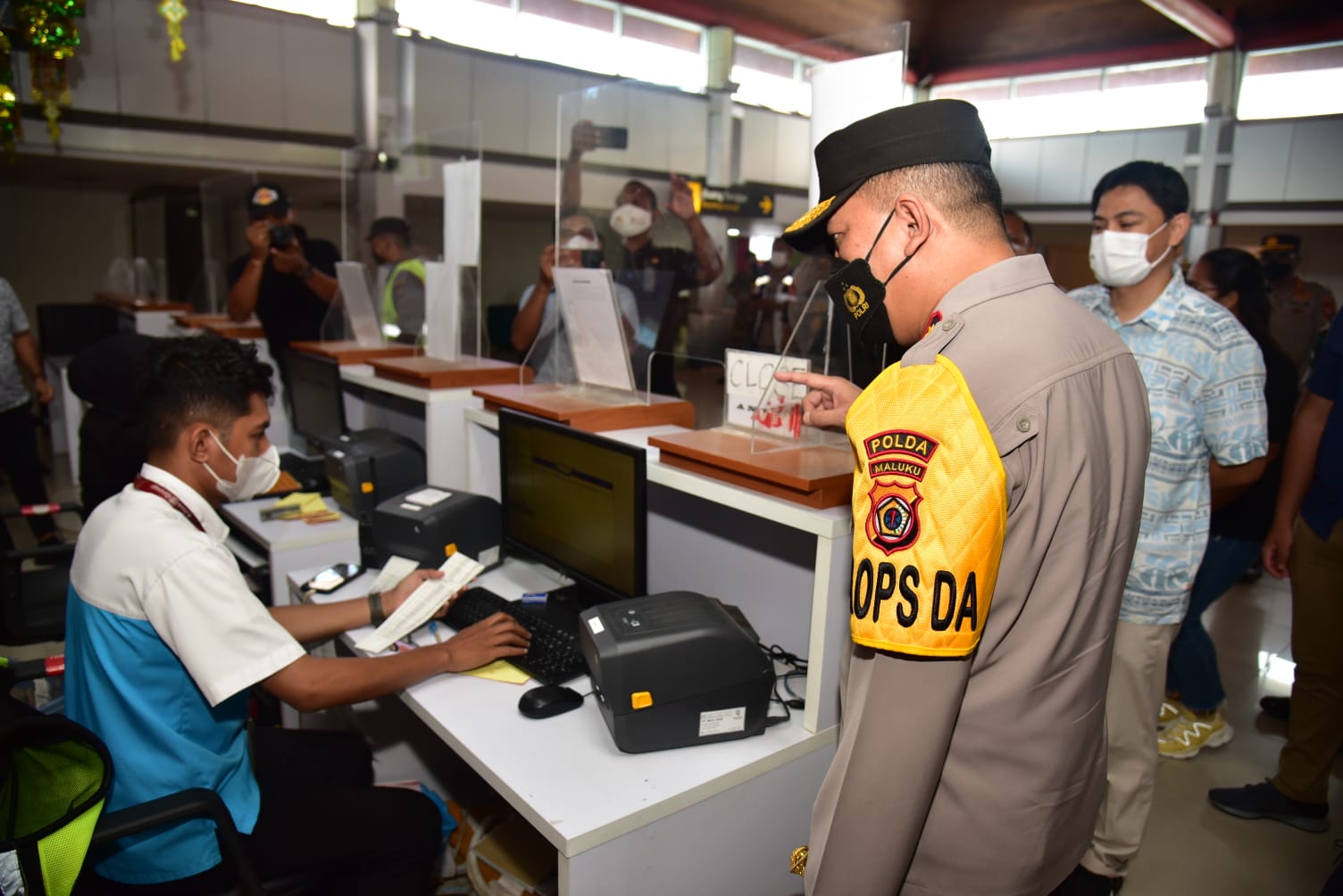 Kapolda tampak melihat pos pengamanan dan pelayanan Kesehatan dari Puskesmas Waai. Ia juga melihat kondisi KMP Inelika yang akan menyeberang ke Waipirit, sambil berbincang dengan sejumlah penumpang di lantai dua Ferry tersebut.