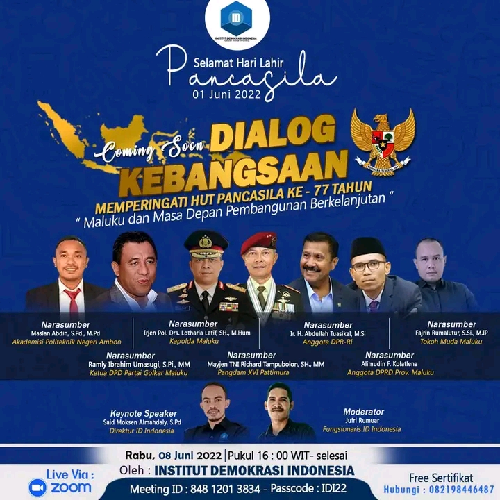 Pada flayer yang disebar, Kapolda Maluku bertindak sebagai narasumber dialog kebangsaan terkait peringatan HUT Pancasila ke-77. Kegiatan itu mengusung tema “Maluku dan Masa Depan Pembangunan Berkelanjutan”.
