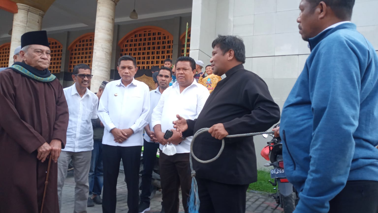 “Dalam penyerahan satu ekor sapi disaksikan oleh Pj walikota ambon Bodewin M. Wattimena Sekertaris umum MPH sinode Pdt Izak Sapulette Kepala Dinas Komunikasi Informatika & Persandian Joy. Reinier. Adriaansz diterima langsung oleh Imam Masjid Raya Al-Fatah Haji R.R Hasanussi