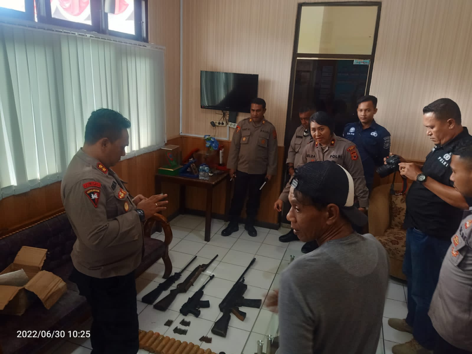 “Yang diserahkan berupa 4 pucuk senpi laras panjang rakitan, 15 buah bom pipa, 2 buah flasball, beserta amunisi jenis kaliber 5,56 sebanyak 18 butir, jenis 7,62 sejumlah 6 butir, dan jenis 6,5 sebanyak 8 butir,” ungkap Denny di Ambon, Rabu (6/7/2022).