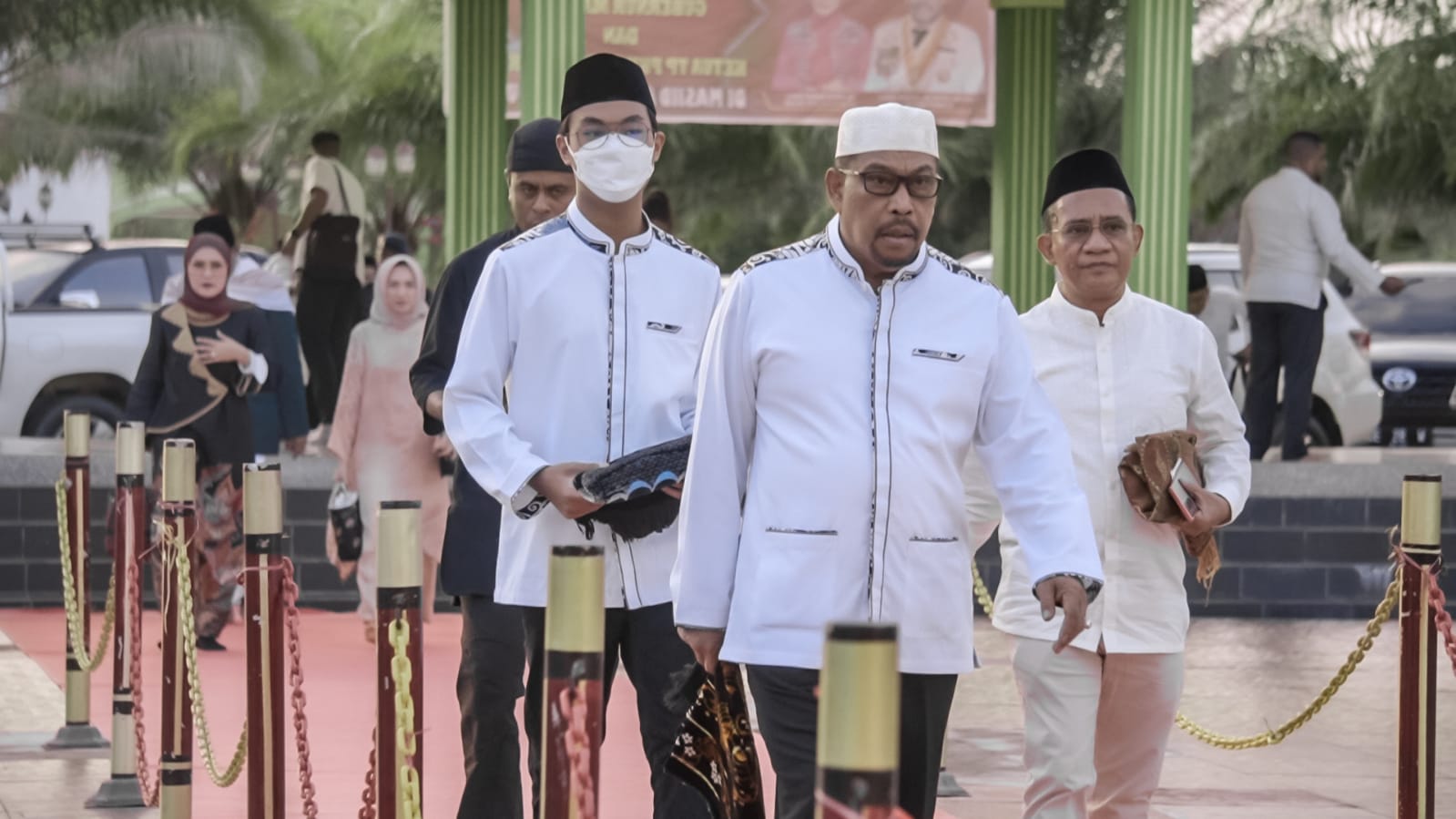 Ratusan warga juga turut melaksanakan shalat Idul Adha bersama Gubernur.