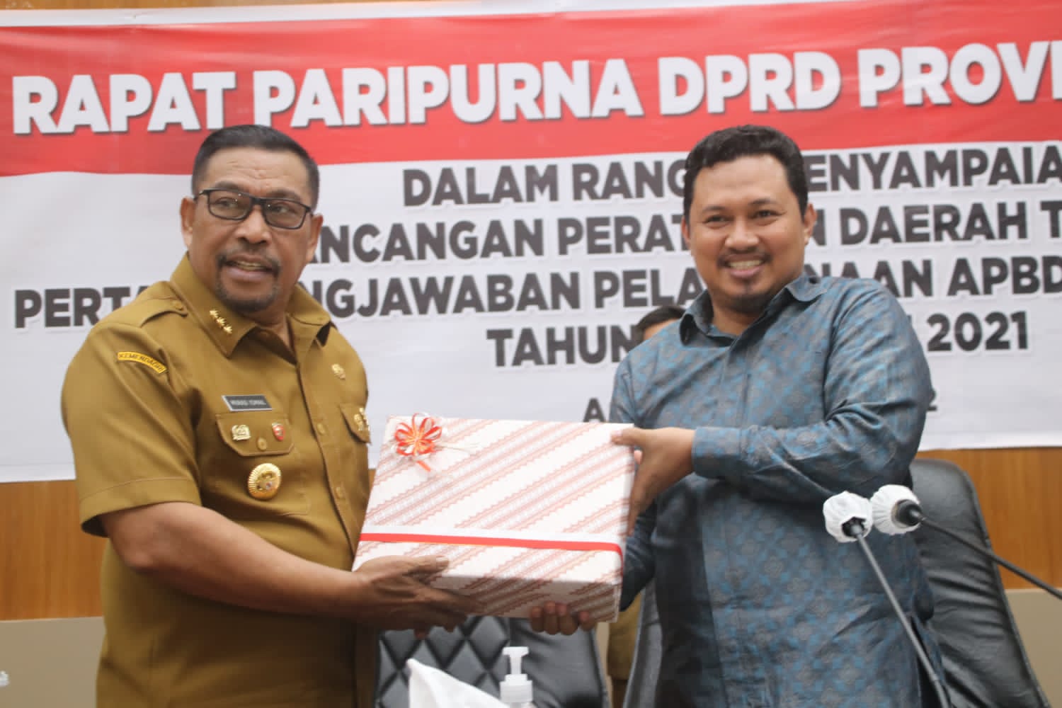 AMBON- Rancangan Peraturan Daerah (Ranperda) Pertanggungjawaban Pelaksanaan Anggaran Pendapatan dan Belanja Daerah (APBD) Tahun Anggaran 2021 disampaikan serta diserahkan Gubernur Maluku Murad Ismail ke DPRD Provinsi Maluku, Selasa, (19/7/2022).