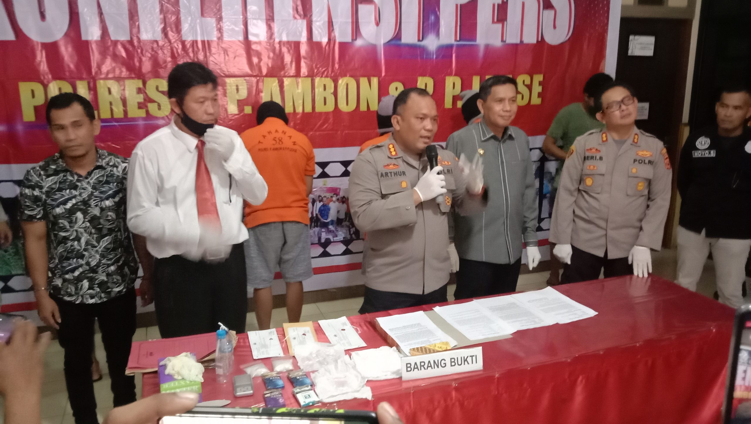 “Tersangka pertama inisial DGB (35) alamat Karang Panjang (Karpan) Kota Ambon. DGB diamankan di Ahuru jam 5 sore, dengan Barang Bukti (BB) 2 paket ganja,” ungkap Kapolresta P.Ambon Dan Pp.Lease, Kombespol Raja Arthur Lumongga, didampingi Pejabat wali Kota Ambon, Bodewin Wattimena kepada Wartawan di Ambon, Kamis (21/07/2022).