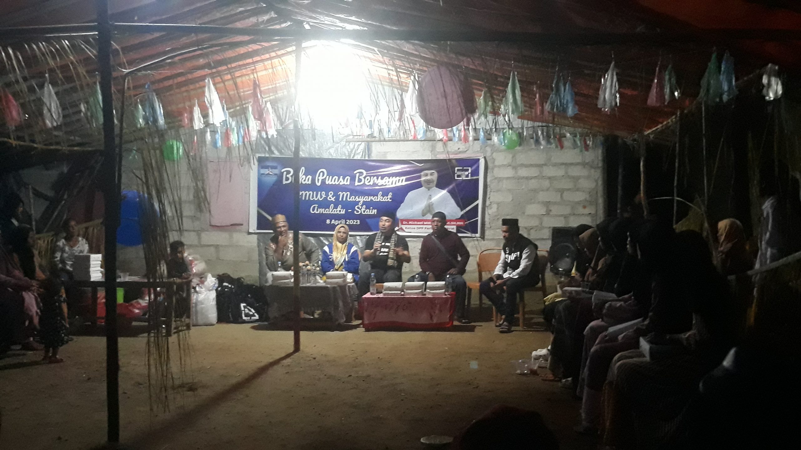 Ambon,MG.com – Bung Michael wattimena mengelar buka puasa bersama masyarakat Amalatu – stain sekaligus membagikan sembako,Sabtu ( 08/04/23).