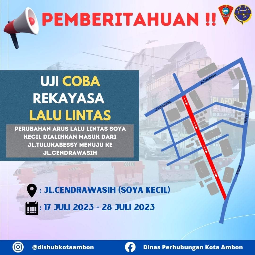 Dirinya berharap masyarakat kota Ambon dapat menyesuaikan dengan proses uji coba rekayasa lalu lintas yang akan berlangsung selama 10 (sepuluh) hari kerja yakni 17 – 28 Juli 2023.