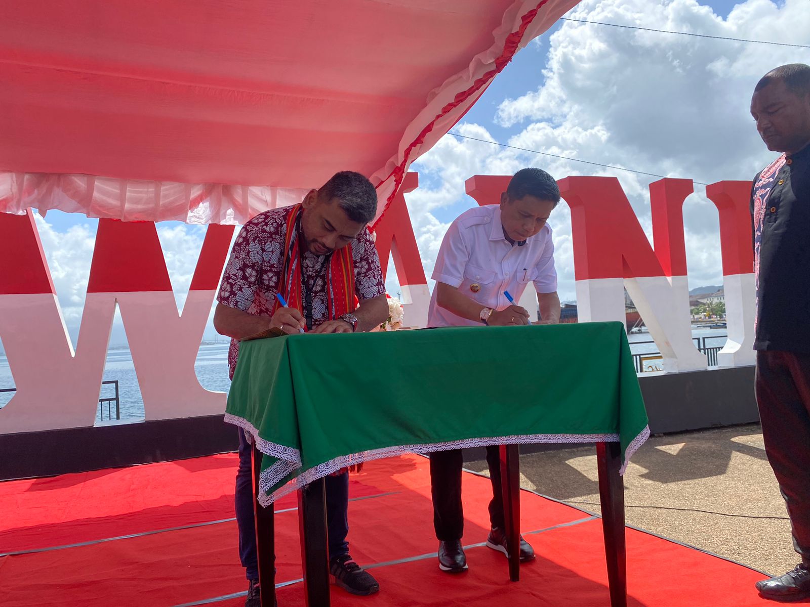 Ambon,MG com- Penjabat Walikota Ambon Bodewin Wattimena menerima aset ruang terbuka publik pantai Wainitu dari balai pelaksanaan prasarana permukiman wilayah Provinsi Maluku.