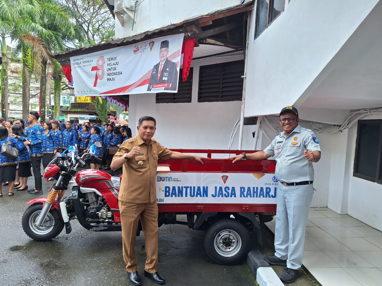Ambon,MG.com- Pemerintah Kota Ambon menerima bantuan motor pengangkut sampah dari PT Jasa Raharja Cabang Maluku yang berlangsung halaman Parkir balaikota,Senin ( 28/08/23).