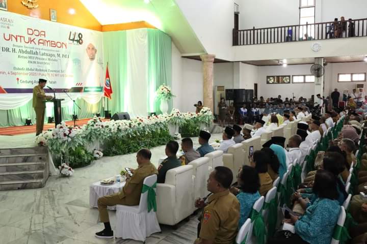Ambon,MG.com-Jelang hut Kota Ambon ke 448 yang akan dirayakan pada tanggal 07 september Pemerintah Kota mengelar doa bersama pada dua lokasi, secara kristen pada gedung gereja marantha yang di pimpin oleh Pdt Elifas T. Maspaitella dan secara islam berlangsung pada gedung ashari Alfata – Ambon yang di pimpin tausiya oleh Dr KH.Abdullah latuapo zikir dan doa dibawakan Ustadz Abdul Rahman Tuanaya, Senin ( 04/09/23).