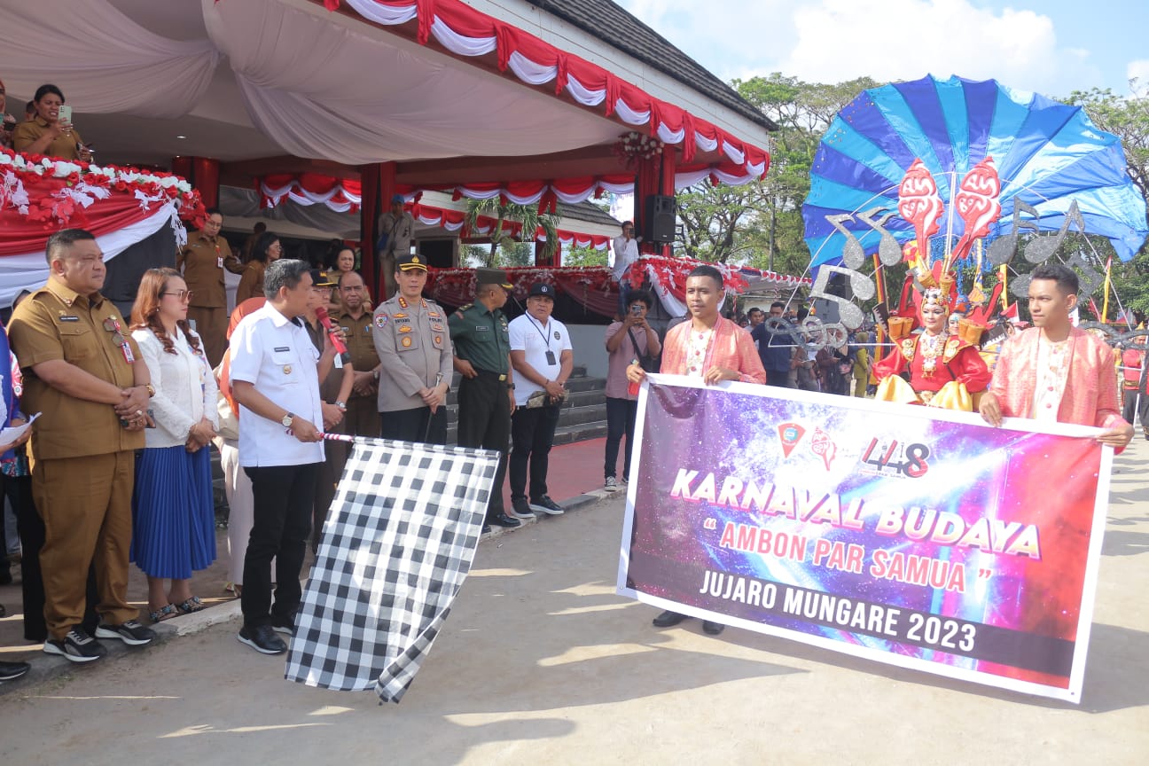 Setelah menggelar berbagai kegiatan sesuai dengan agenda panitia HUT Kota maka Hari ini Selasa 5 September 2023 akan digelar karnaval budaya yang diikuti oleh 25 paguyuban yang berdomisili di Kota Ambon Hal ini sebagai bukti apresiasi serta kontribusi paguyuban atas ide dan gagasan pemerintah kota dengan panitia Ambon serta menjalin silaturahmi antar suku karnaval Budaya adalah sebuah bentuk acara yang menampilkan iringan-iringan dari kelompok peserta yang membawa keunikan adat serta kearifan lokal daerah masing-masing mulai dari busana musik tarian permainan hingga hasil bumi kegiatan yang dilaksanakan ini bertujuan untuk mempererat hubungan kekerabatan serta meningkatkan persatuan dan kesatuan antar suku yang ada di Kota Ambon”ujar nya