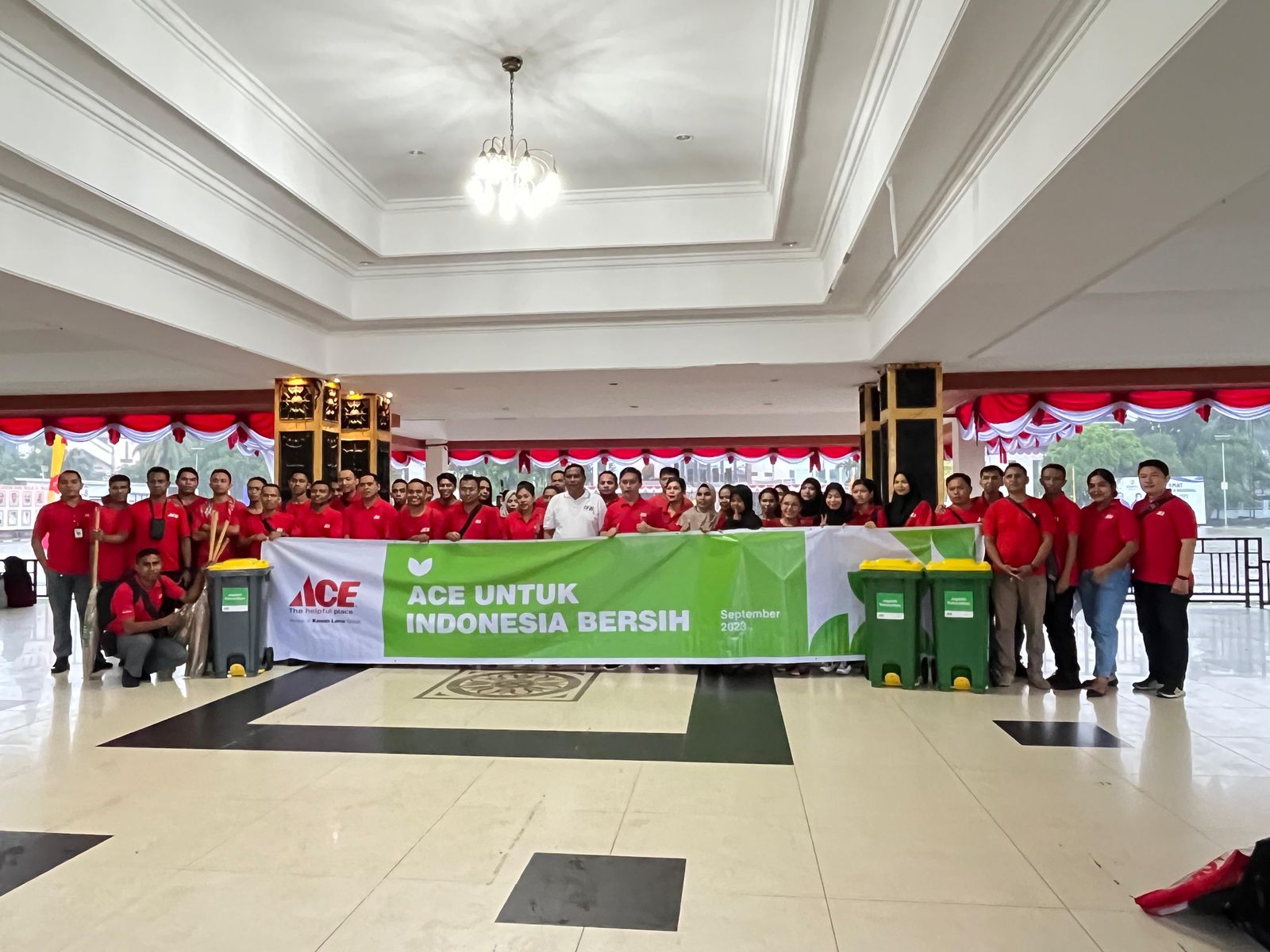 Pemberian bantuan Alat kebersihan ini juga bentuk partisipasi dari PT ACE Hardware Maluku dan kita juga melakukan kerja bakti di seputaran Lapangan Merdeka karena ini adalah merupakan ikon Kota Ambon kegiatan kerja bakti ini pun juga melibatkan para karyawan PT ACE Hardware ini serentak pada 60 Kota yang ada di indonesia program ini sudah dijalankan dari tahun 2016″jelasnya