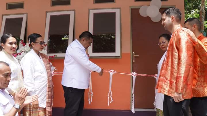 Ambon,MG.com-Sekertaris Kota Ambon Agus Ririmasse meresmikan Gedung paud pancaran kasih dusun Toisapu Hutumuri Kota Ambon,Rabu ( 11/10/23).
