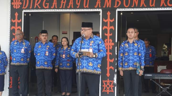 Ambon,MG.com – Berlangsung pada halaman parkir balaikota Pemerintah Kota Ambon mengelar upacara hari pahlawan ke 78,Jumat ( 10/11/23).