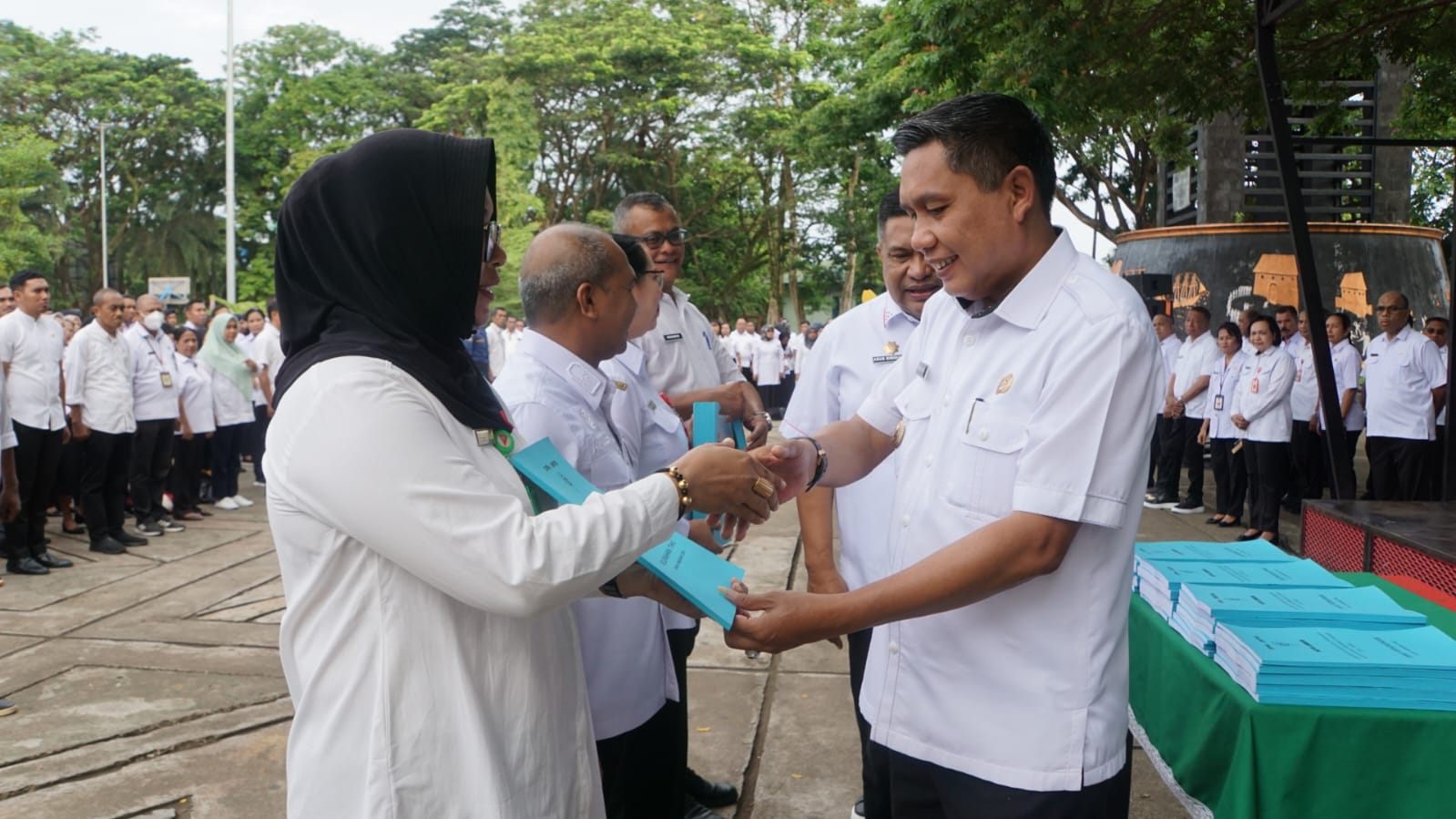 Ambon,MG.com – Penjabat Walikota Ambon Bodewin Wattimena menyerahkan dokumen perancangan anggaran tahun 2024 kepada organisasi pemerintah Daerah ( OPD) lingkup pemerintah Kota Ambon yang berlangsung pada pattimura park, Rabu ( 10/01/24).