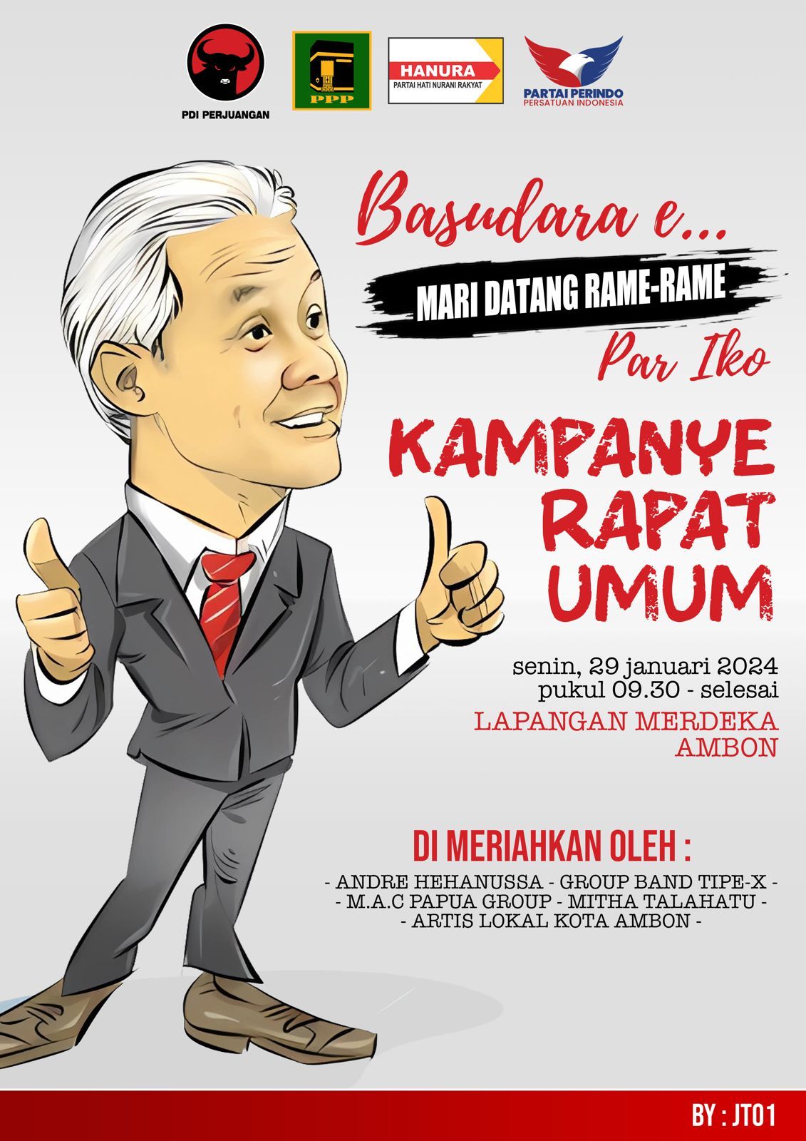 Ambon,MG.com- Badan Pengawas Pemilu (Bawaslu) Kota Ambon, melakukan pengawasan melekat terkait proses kampanye rapat umum terbuka calon presiden nomor urut 3 Ganjar Pranowo di kota Ambon
