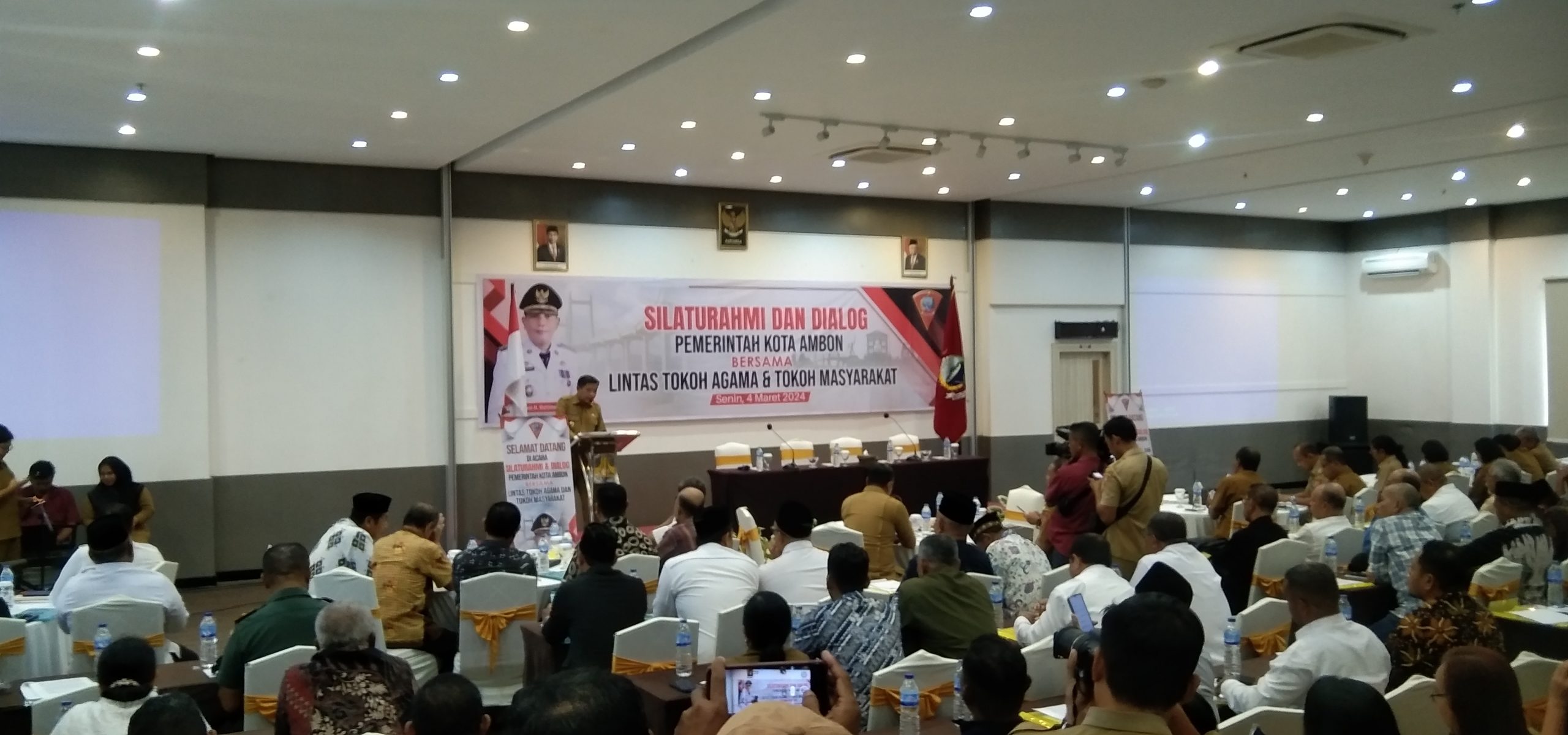 Ambon,MG.com-Pemerintah Kota Ambon mengelar silahturahmi dan dialog bersama tokoh agama dan tokoh masyarakat yang berlangsung pada hotel Manise,Senin ( 04/03/24).