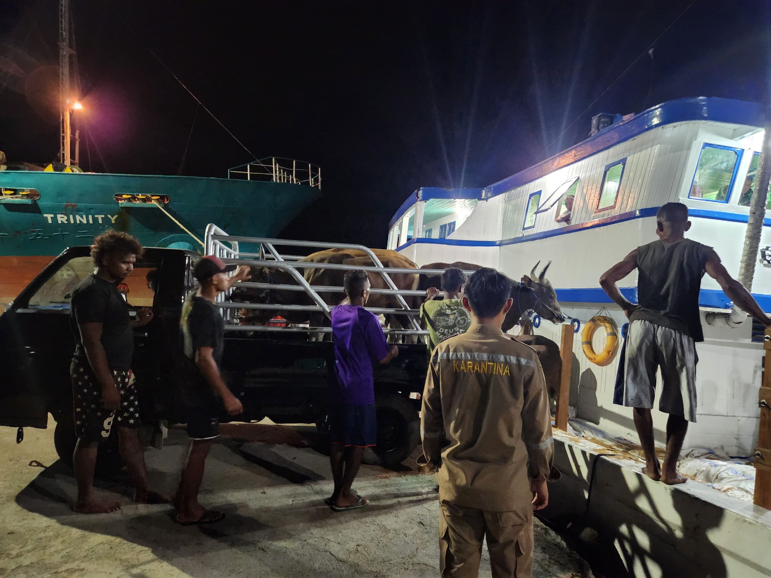 Ditemani dinginnya angin malam tak membuat petugas Balai Karantina Hewan, Ikan, dan Tumbuhan Maluku (Karantina Maluku) satpel kobisadar mundur melakukan pengawasan pemuatan sapi. Bertempat di pelabuhan Kobisadar, petugas karantina dengan sigap dan siap melakukan beberapa tindakan karantina hewan meliputi pemeriksaan fisik dan dokumen sebelum seluruh sapi diberangkatkan menuju Sorong.