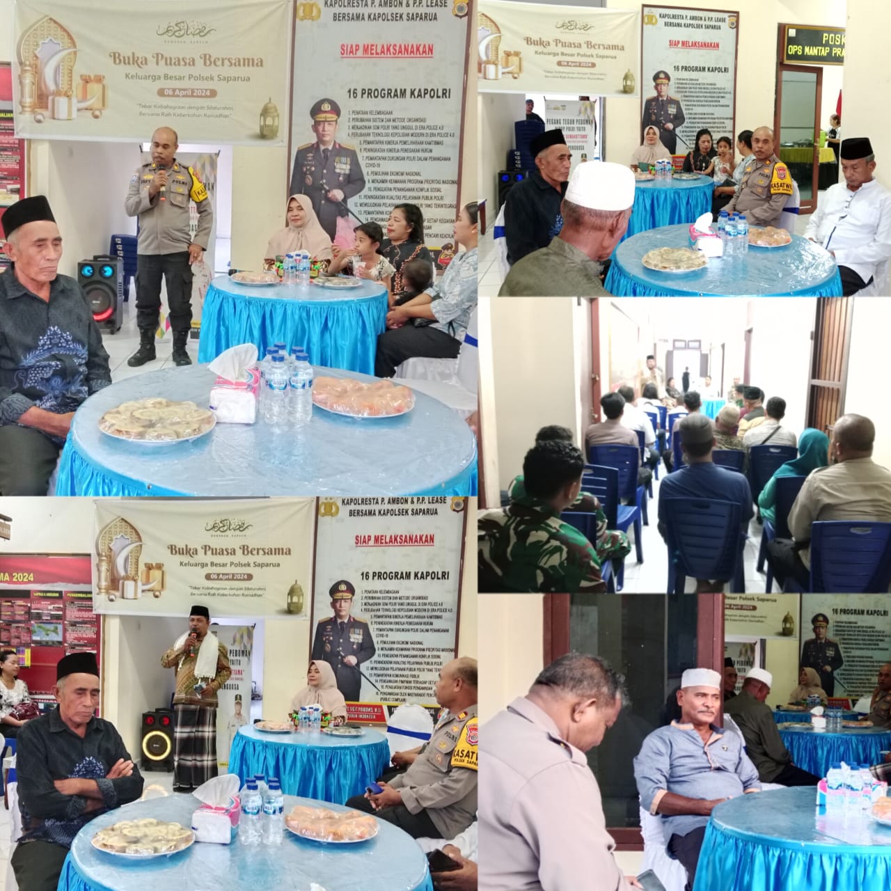 Kegiatan buka puasa bersama di Polsek Saparua dihadiri oleh keluarga besar Polsek Saparua sekaligus pengurus bhayangkari ranting Polsek Saparua, dengan tujuan untuk mempererat tali silaturahmi antara seluruh personil Polsek Saparua dan Bhayangkari Ranting Polsek Saparua