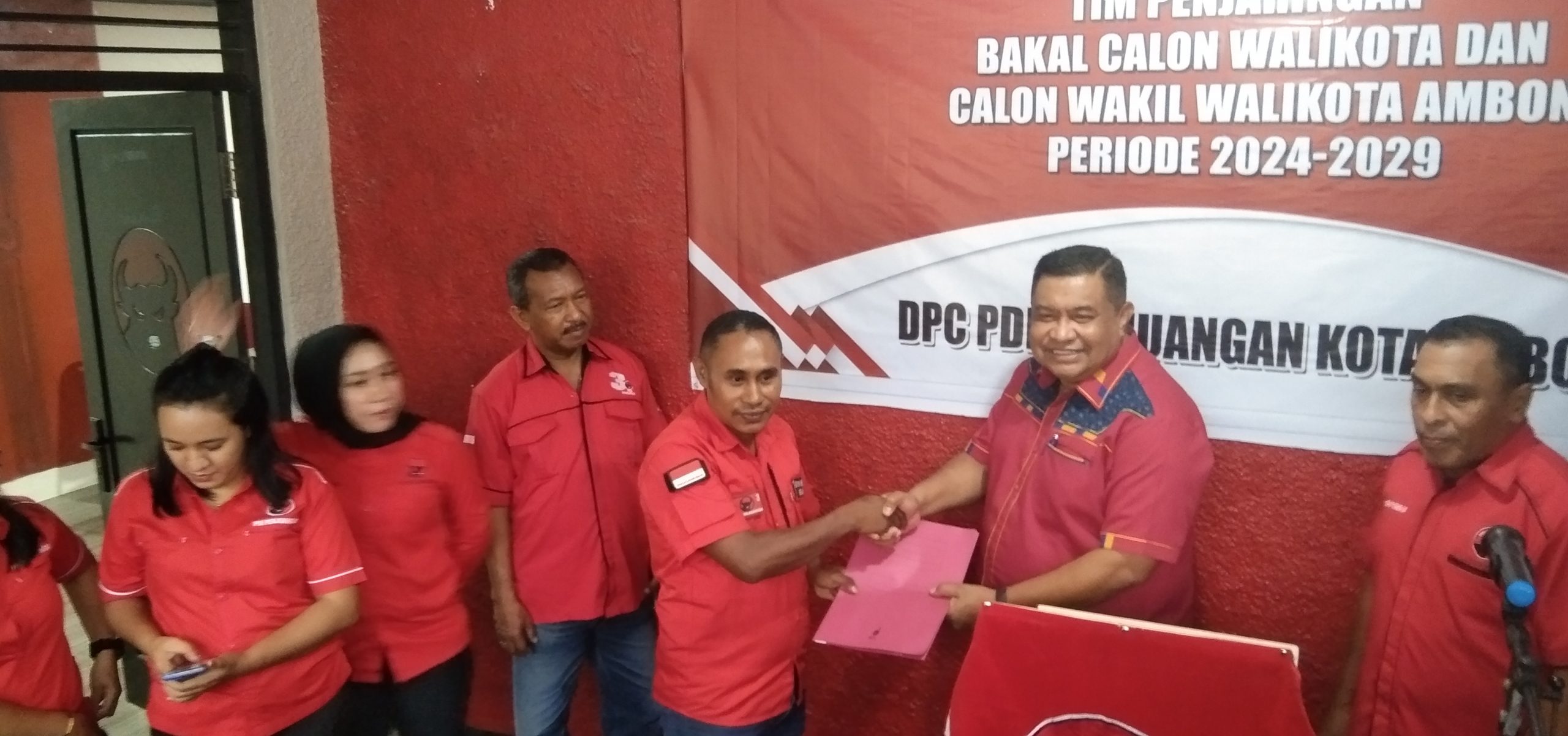 “Saya diterima oleh tim penjaringan bakal calon walikota Ambon dari DPC PDIP Kota Ambon untuk mengembalikan formulir pendaftaran bakal calon walikota Ambon dan setelah saya diterima dan dicek langsung berkas-berkasnya maka formulir pendaftaran bakal calon walikota Ambon dinyatakan lengkap”terangnya