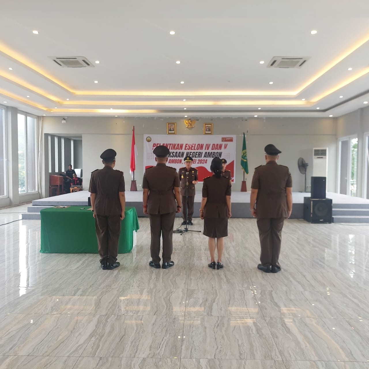 Dalam upacara ini, Jabatan Esalon IV dari Demianus Eckhart Palapia, SH.MH kepada Pejabat baru Amry Bayakta, SH, Kacabjari Ambon di Saparua dari Pejabat lama Ardy, SH. MH kepada Pejabat baru Achmad Bhirawa Bissawab, SH.MH dan Kacabjari Banda dari Pejabat Lama Muhammad Salahudin. SH.MH kepada Pejabat baru Ilmu ardy Riyadi.SH.MH dan Ester Tanasale Pejabat Esalon V sebagai Kaur Perlengkapan pada Bidang Pembinaan , acara serah terima dan sumpah jabatan di Pimpin langsung oleh Kepala Kejaksaan Negeri Ambon Adhryansah, SH MH,