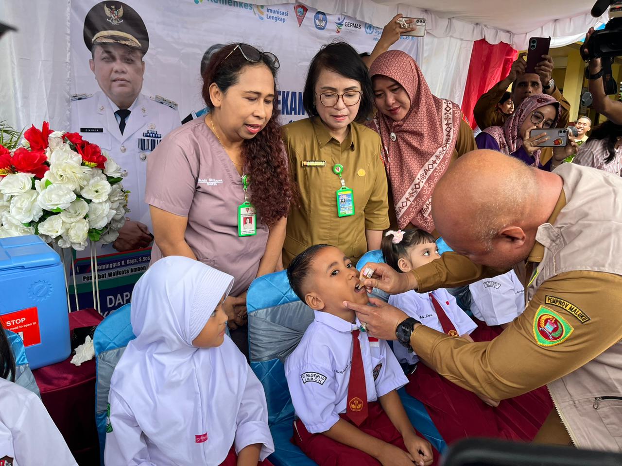 Ambon,MG.com-Penjabat walikota Ambon Dominggus Kaya telah melakukan pencanangan Pekan Imunisasi Polio yang berlangsung pada kompleks SD PDK Kota Ambon,Selasa ( 23/07/24).