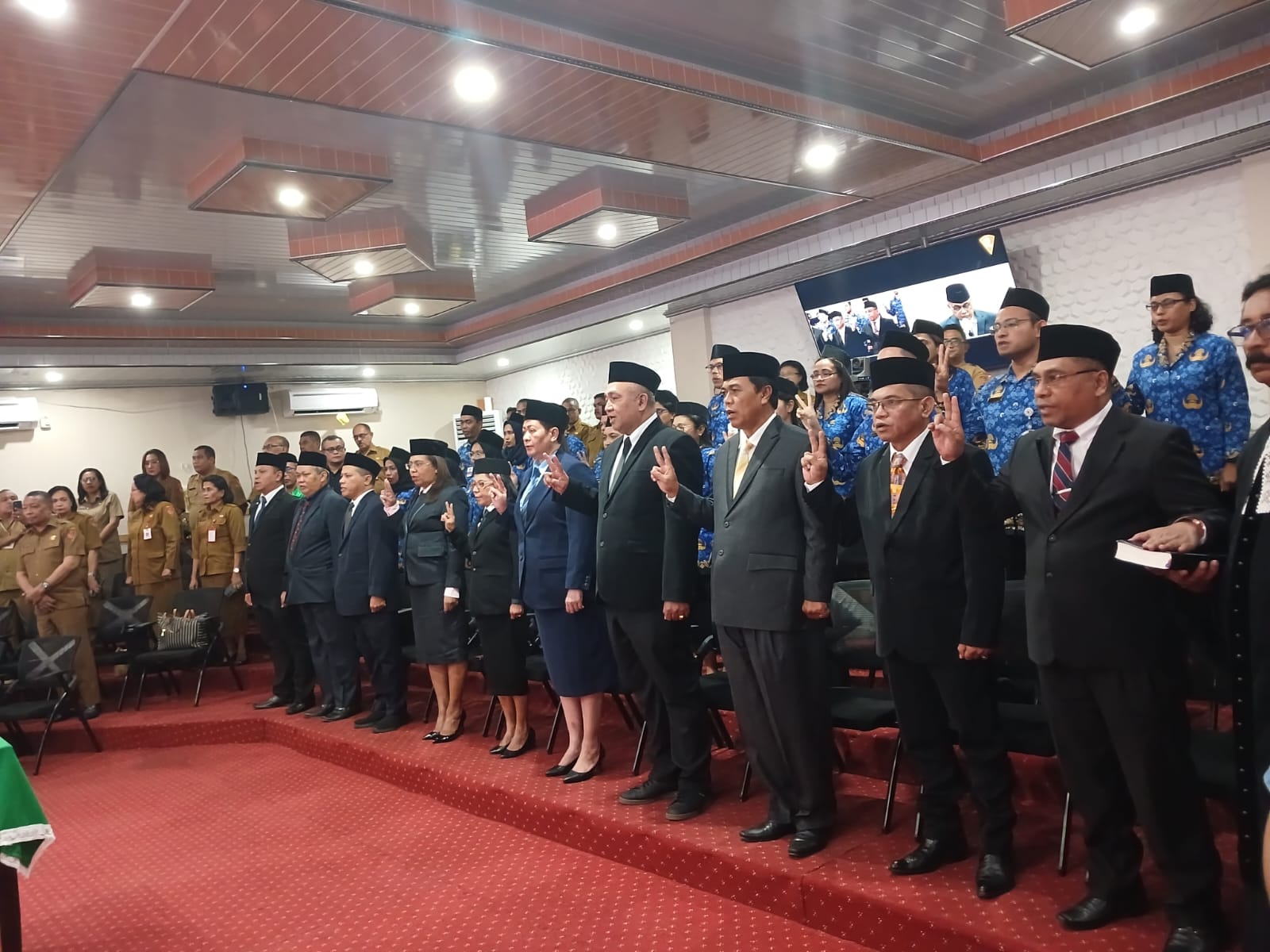 Ambon,MG.com – Penjabat Wali Kota Ambon, Dominggus Kaya secara resmi melantik 10 Pejabat Tinggi Pratama lingkup Pemerintah Kota Ambon, Di Ruang Vlisinggen Senin (22/7/2024).