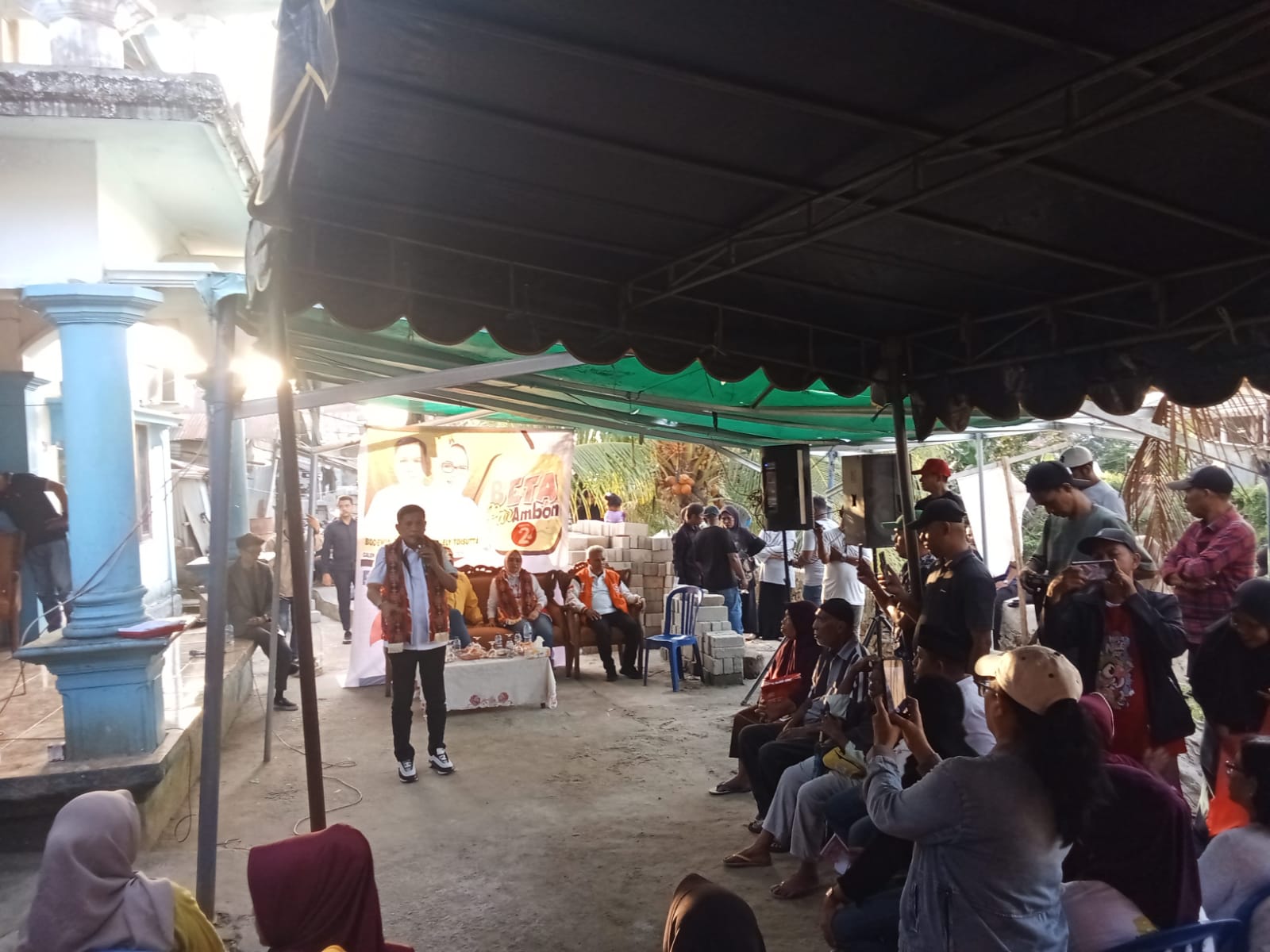 “Untuk itu,Kami mengucapkan terima kasih sudah datang pada kawasan RT004 kebun cengkeh hanya meminta dari Paslon Beta untuk ketersediaan air bersih dan jalan setapak dan fasilitas keamanan”ujar ketua pemuda RT004