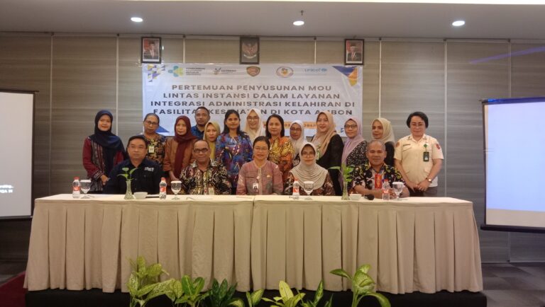 “Tahun lalu, UNICEF telah mendukung pembentukan tim AMPSR di Provinsi Maluku dan Kota Ambon. Pertemuan Penyusunan MoU lintas instansi dalam layanan integrasi administrasi kelahiran di fasilitas kesehatan, merupakan inisiatif yang penting dalam meningkatkan akses dan kemudahan layanan publik, khususnya terkait pencatatan administrasi kelahiran,” ungkap dr. Arte Piscesca.