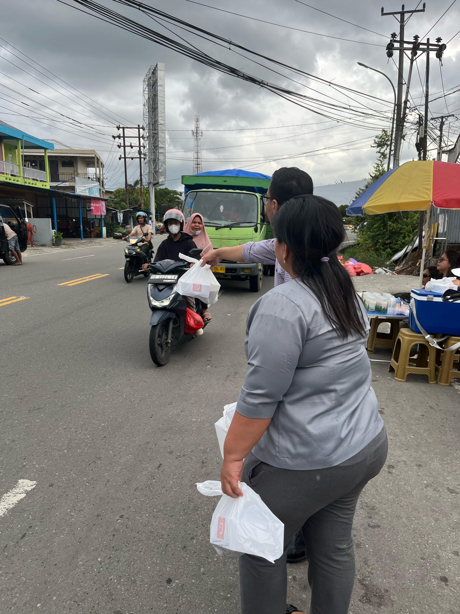 Ratusan paket takjil dibagikan kepada para pengendara yang melintas di sekitar Masjid Darul Hasanah menjelang waktu berbuka puasa. Antusiasme masyarakat terlihat dari senyum dan ucapan terima kasih yang diberikan kepada tim Swiss-Belhotel Ambon.