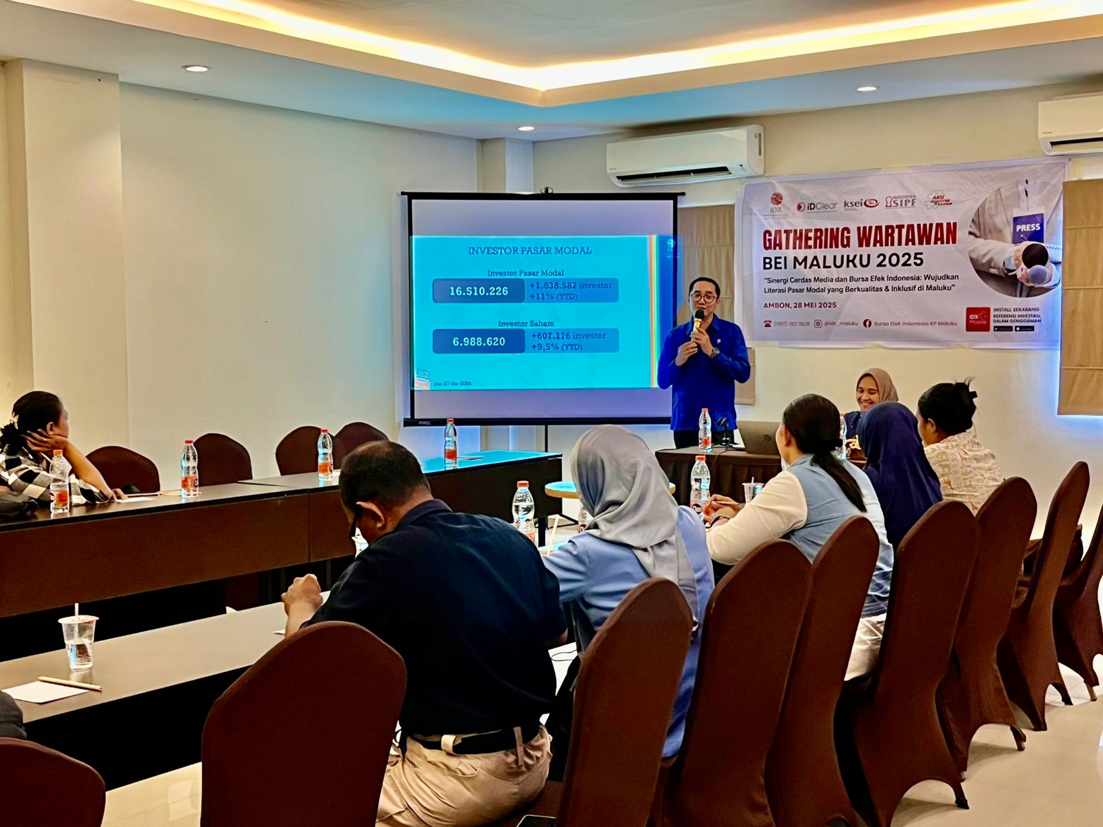 Kepala BEI Perwakilan Maluku Albertho F.Dachi menyampaikan bahwa, Industri pasar modal Indonesia menunjukkan tren yang sangat menggembirakan di tahun 2025. Hingga bulan April, jumlah investor pasar modal Nasional telah bertambah sebanyak 1,6 juta investor atau mengalami pertumbuhan 11% dibandingkan tahun sebelumnya. Angka ini hampir menyentuh target tahunan sebesar 2 juta investor, padahal tahun baru berjalan setengahnya.