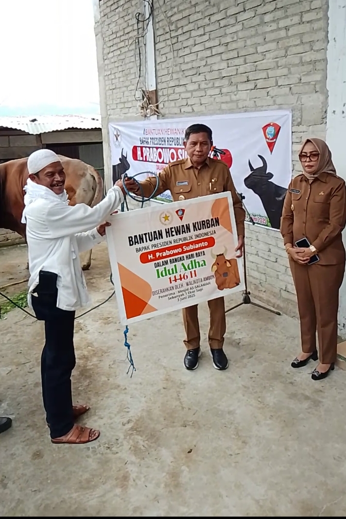 Presiden Republik Indonesia Bapak Haji Prabowo Subianto memberikan satu ekor sapi bagi pemerintah kota Ambon untuk selanjutnya disalurkan sesuai ketentuan.