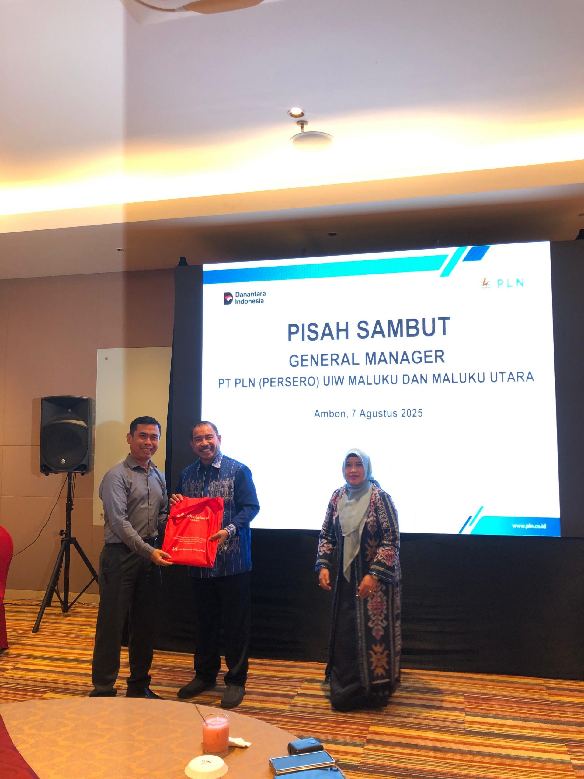 Cluster General Manager Swiss-Belhotel Ambon dan Zest Hotel Ambon, Bapak I Ketut Gunarta, turut hadir dalam acara pisah sambut pimpinan General Manager PLN UIW Maluku dan Maluku Utara yang diselenggarakan di Zest Hotel Ambon, Kamis (7/8/2025).