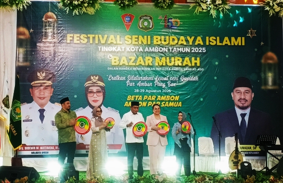 Ambon, MG.com Walikota Ambon Bodewin Wattimena secara resmi menutup festival budaya islami yang digelar oleh DPD LASQI Nusantara Jaya Kota Ambon diselenggarakan selama dua hari yang berlangsung pada gedung Ashari Al Fatah,Jumat ( 29/08/25).
